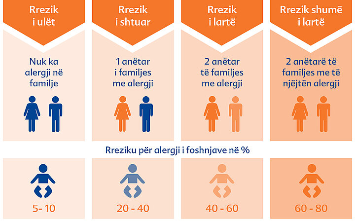 Një foshnje konsiderohet e rrezikuar nga alergjia nëse një i afërm i drejtpërdrejtë (nëna, babai ose vëllai apo motra) ka një alergji, sepse ekziston parakushti për trashëgim të alergjisë. Aktualisht, rreth 20-30% e foshnjave janë të prekura nga alergjitë. Alergjitë mund të shfaqen në forma të ndryshme. Nëse një foshnje ka me të vërtetë alergji, kjo varet nga shumë faktorë. Një faktor është të ushqyerit gjatë muajve të parë të jetës.